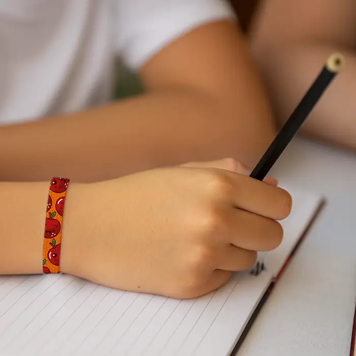 Las pulseras de tela son el regalo para alumnos más buscado en el fin de curso. Se han convertido en una tradición en muchos colegios e institutos de España, con alumnos que las coleccionan año a año como recuerdo de su paso por el centro y de sus profesores. Para conseguir la pulsera perfecta, escoge pulseras de 28cm de longitud para niños y adolescentes, y 35cm para adultos. Consulta la tabla de compatibilidades antes de escoger el cierre y añade, si lo necesitas, distintos diseños para distintas clases, cursos o asignaturas. Con un diseño colorido y una frase motivadora, tus alumnos y alumnas guardarán siempre un bonito recuerdo de su etapa junto a ti, reforzando además el vínculo entre compañeros y celebrando todo lo compartido durante el curso.